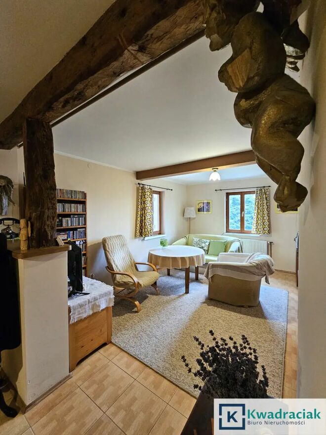Krótki opis nieruchomościOferujemy na sprzedaż wyjątkowy dom o konstrukcji drewnianej, położony na malowniczej działce o łącznej powierzchni 39 arów. Nieruchomość przeszła generalny remont, co zapewnia komfort i nowoczesne rozwiązania przy zachowaniu unikalnego klimatu. Dom o powierzchni ok. 140 m², w pełni odnowiony, z funkcjonalnym układem pomieszczeń. Dodatkowo na posesji znajdują się garaż jednostanowiskowy oraz wiata garażowa, które zapewniają wygodne miejsce na samochody. Ponadto budynek gospodarczy, który można wykorzystać według własnych potrzeb. Do dyspozycji przyszłego nabywcy pozostaje także duży zadbany ogród z licznymi nasadzeniami, ogrodzona posesja gwarantuje prywatność.