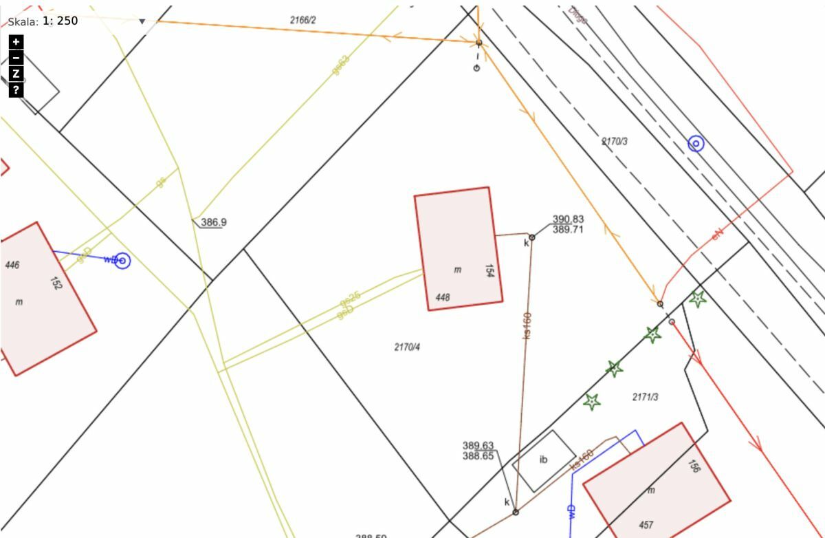 Działka uzbrojona w prąd, gaz, kanalizację (przyłącz do domu).