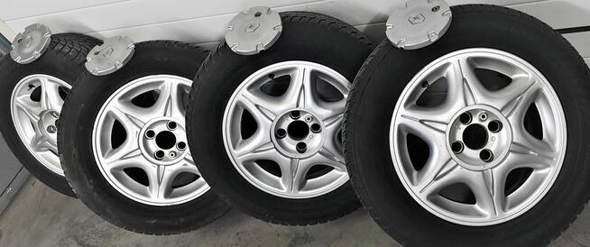 Sprzedam koła z Opla Astry II G 2001 r.: 1) Alufelgi 6 x 15 ET49, rozstaw śrub 5x110 (4 sztuki) + 2) założone opony ...