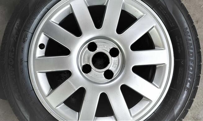Sprzedam 4 felgi aluminiowe wraz z oponami letnimi do Volkswagena Golf V. Rozmiar: R15 rozstaw śrub 5x112mm. Odbiór osobisty.
