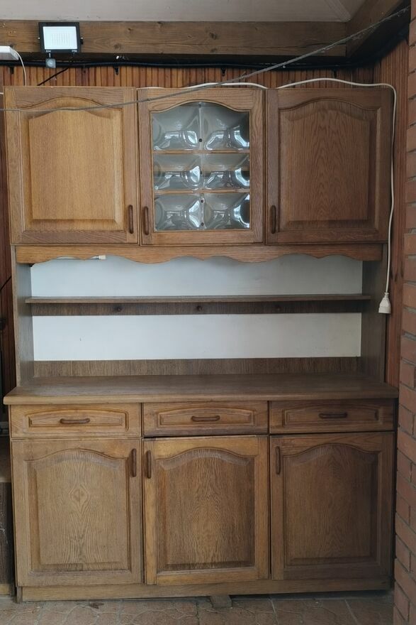 Na sprzedaż meble drewniane fronty jasny dąb. Do garażu na taras lub do renowacji na pewno posłużą jeszcze parę ładnych lat. Miejscowość Równe - zależy nam na czasie, cena do uzgodnieniaWymiary szerokość 150, wysokość 205 głębokość góra 30 cm